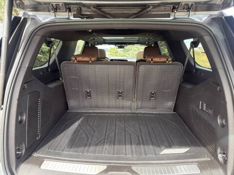 Advanced Trailering Package: Blind Zone Steering Assist with Trailering; Smart Trailer Integration Indicator; Hitch View with Pan/zoom Image Adjustment. Max Trailering Package: 2-Speed Active Electronic Autotrac Transfer Case; Hill Descent Control; Extra Capacity Cooling System; Integrated Trailer Brake Controller. Sun and Tow Package: Dual-Pane Power Panoramic Sunroof; Dual-Pane Power Panoramic Sunroof. Preferred Equipment Group 3LZ: 4-Way Power Front Passenger Lumbar Seat Adjuster; Bright Front and Rear Door Sill Plates; Memory Settings; 3rd Row 60/40 Power-Folding Split-Bench; Rear Power Liftgate; Chrome Door Handles with Body-Color Strip; Interior Camera; LED Tail Lamps; 6.2L EcoTec3 V8 Engine; Inside Rearview Auo-Dimming Rear Camera Mirror; Front LED Fog Lamps; Heated Steering Wheel; Heated Driver and Front Passenger Seats; Universal Home Remote; Heated 2nd Row Outboard Seats; 22″ X 9″ Bright Machined Aluminum Wheels; Power-Sliding Center Floor Console; Dual Exhaust System; Perforated Heated and Ventilated Seats; Power Tilt and Telescopic Steering Column; LED Headlamps with LED Daytime Running Lamps; 15″ Diagonal Multi-Color Head-Up Display; Wireless Phone Charging; 8-Way Power Front Passenger Seat Adjuster; Bose 10-Speaker Surround with CenterPoint; 4-Way Power Driver Lumbar Seat Adjuster; Magnetic Ride Control Suspension; Power Release 2nd Row Bucket Seats; 275/50R22SL AS BW Tires; Heated Power-Adjustable Outside Mirrors. Premium Liner Protection Package: All-Weather Cargo Mat; 3rd Row All-Weather Floor Liners; First and Second Rows Premium Floor Liners. 22″ Multi-Spoke Gloss Black Wheels. Black Roof Rack Cross Rails. Front and Rear Black Bowtie Emblems. **Equipment listed is based on original vehicle build and subject to change. Please confirm the accuracy of the included equipment by calling the dealer prior to purchase.**